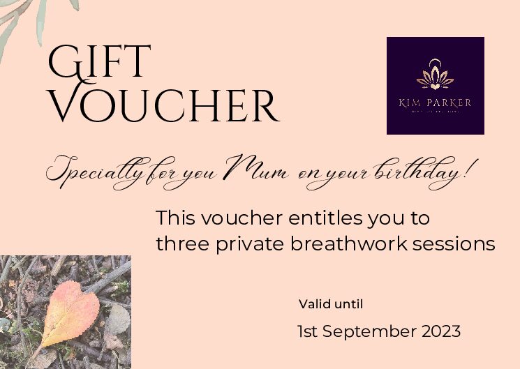 I offer gift certificates. These are ideal if you wish to gift private 1:1 breathwork sessions with me to a loved one. Below is a sample gift certificate. All vouchers can be tailored to your specific requirements. Please message me by clicking on the purple box below and let’s begin a dialogue so you can let me know what you have in mind.